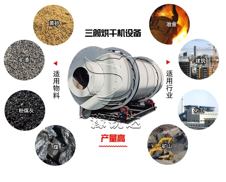 滾筒烘干機(rattler-drying machinery)是傳統的干燥設備之一,設備運轉可靠,操作彈性大、適應性強、處理能力大,廣泛應用于冶金、建材、化工、洗煤、化肥、礦石、沙、粘土、高嶺土、糖等領域,直徑:Φ1000-Φ4000,長度視干燥要求確定。